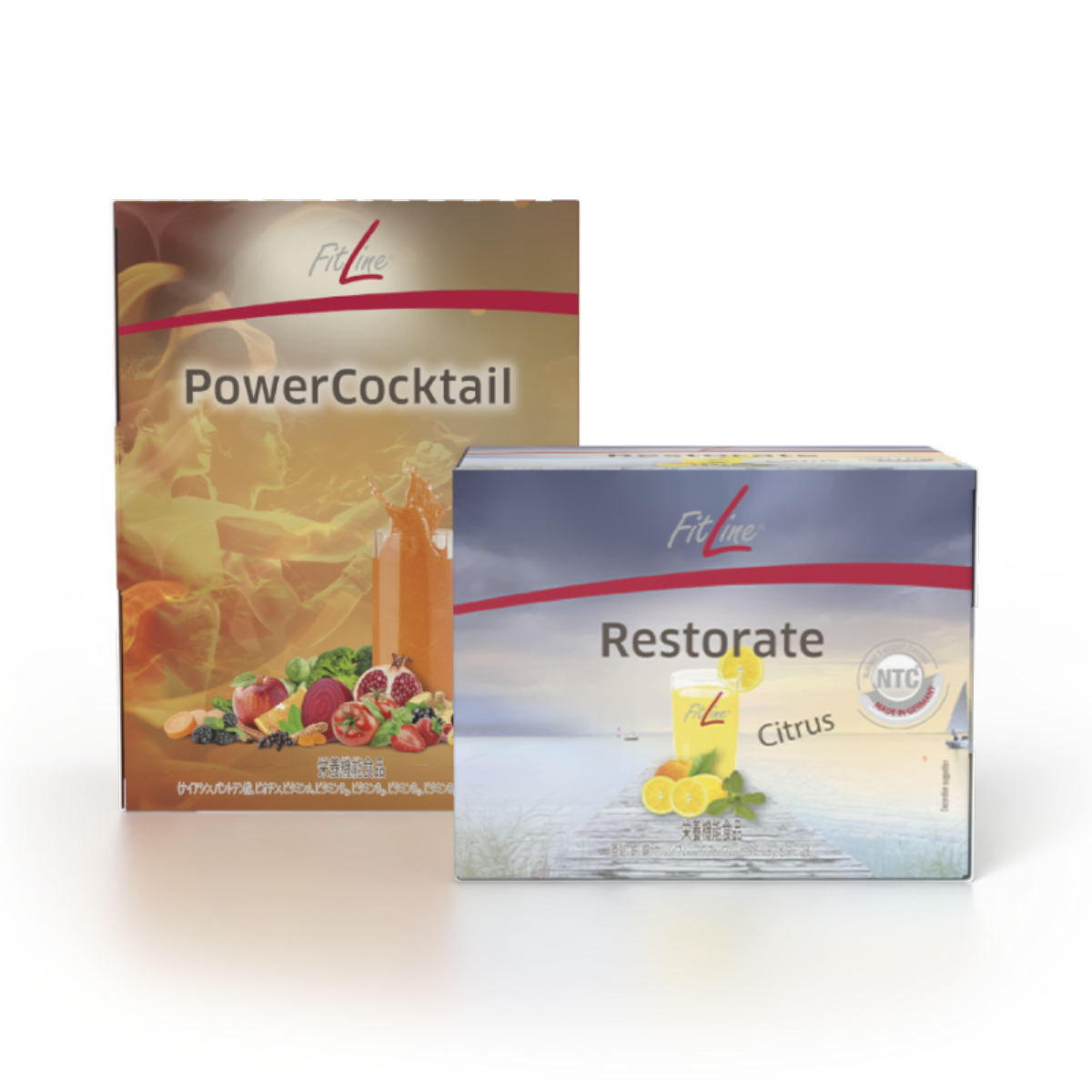 * FitLine パワーカクテル FitLine パワーカクテルは、一日分の総合的な栄養素を摂取するための、美味しいデイリードリンクです。フレーバー: オレンジ風味 FitLine レストレイト カルシウム、マグネシウム、カリウム、鉄、亜鉛、銅、セレン、マンガン、クロム、ビタミンDを配合した、理想的な「リラックス」ドリンクです。ーバー: シトラス風味 ●ナイアシン、パントテン酸、ビオチン、ビタミンA及 ●ビタミンAは、夜間の視力の維持を助ける栄養素で ●ビタミンB₁は、炭水化物からのエネルギー産生と皮や粘膜の健康維持を助ける栄養素で ●ビタミンB₆は、たんぱく質からのエネルギーの産生皮膚や粘膜の健康維持を助ける栄養素です。 ●ビタミンB₁₂は、赤血球の形成を助ける栄養素です。 ●ビタミンCは、皮膚や粘膜の健康維持を助けるととに、抗酸化作用を持つ栄養素です。 ●ビタミンEは、抗酸化作用により、体内の脂質を酸化守り、細胞の健康維持を助ける栄養素です。